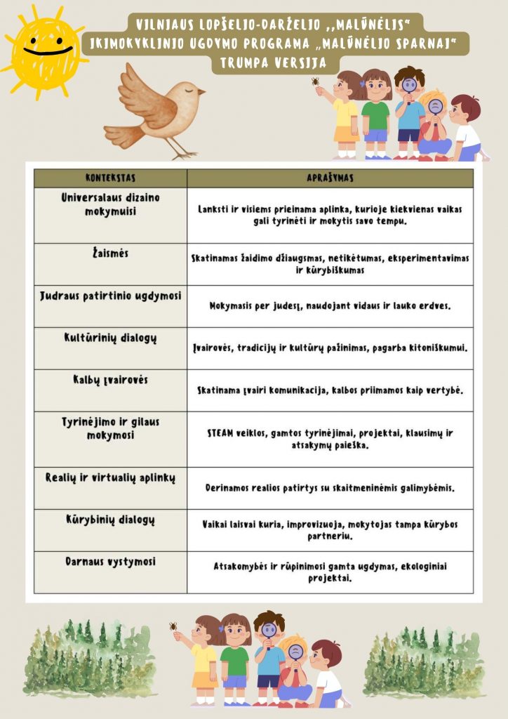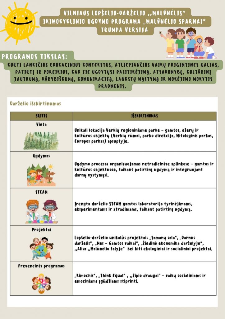 • Vilniaus lopšelio-darželio „Malunėlis“ ikimokyklinio ugdymo programa  „Malūnėlio sparnai“