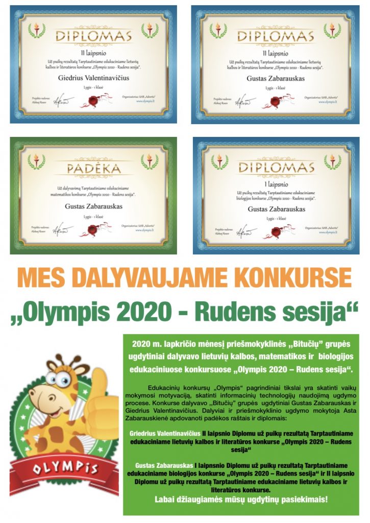 Mes dalyvaujame konkurse „Olympis 2020 – Rudens sesija“