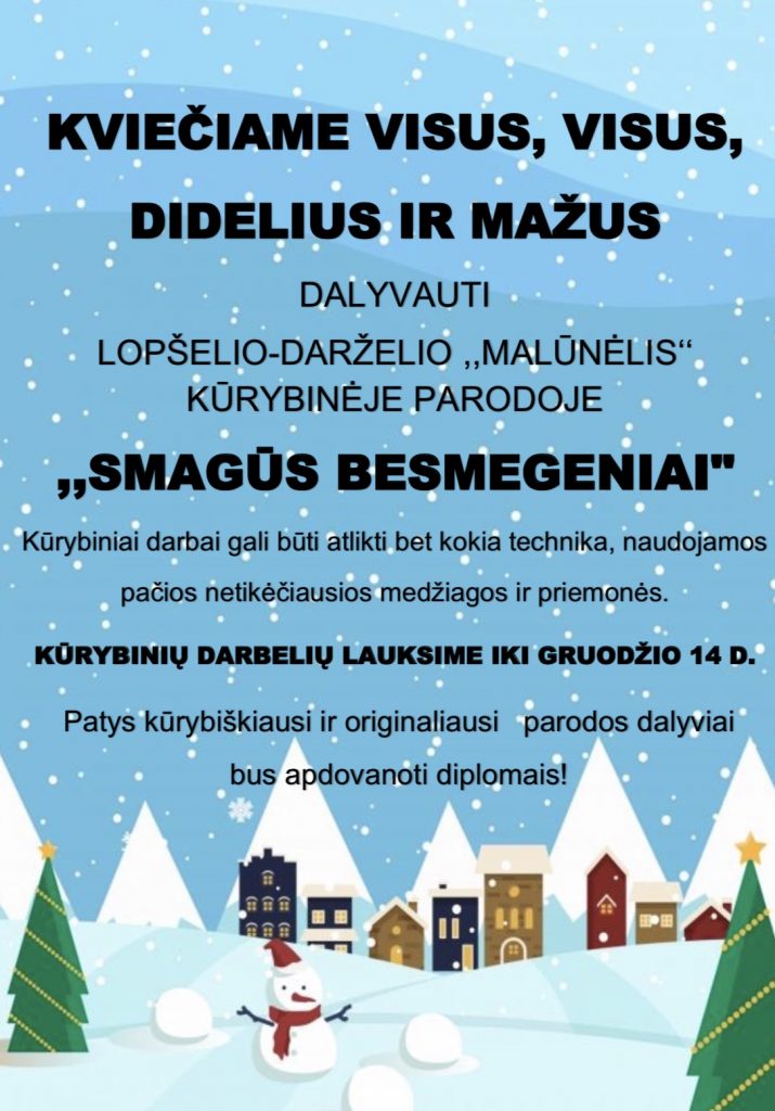 KVIEČIAME DALYVAUTI LOPŠELIO-DARŽELIO ,,MALŪNĖLIS‘‘ KŪRYBINĖJE PARODOJE