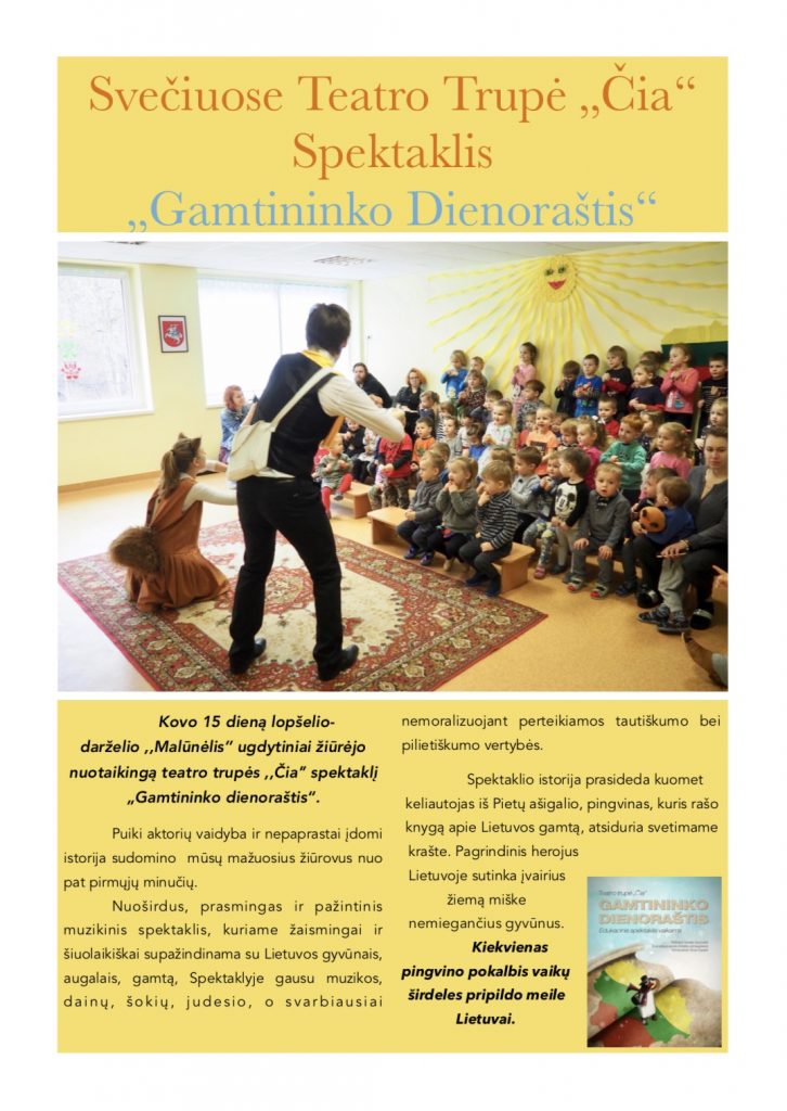 Svečiuose Teatro Trupė „Čia“. Spektaklis „Gamtininko Dienoraštis“