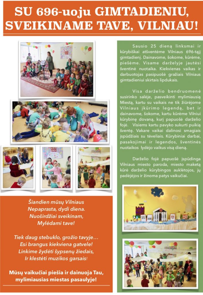 Su 696-uoju GIMTADIENIU, SVEIKINAME TAVE, VILNIAU!