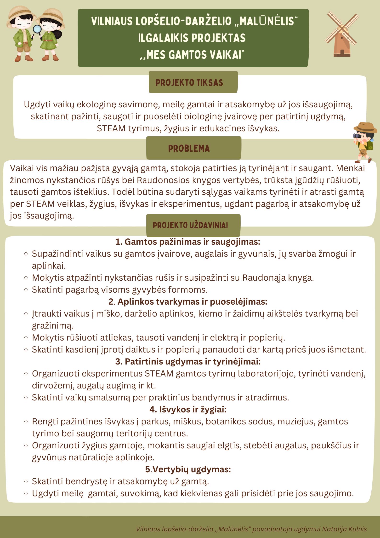 • Ilgalaikis Vilniaus lopšelio-darželio ,,Malūnėlis“ projektas ,,Mes – Gamtos vaikai“