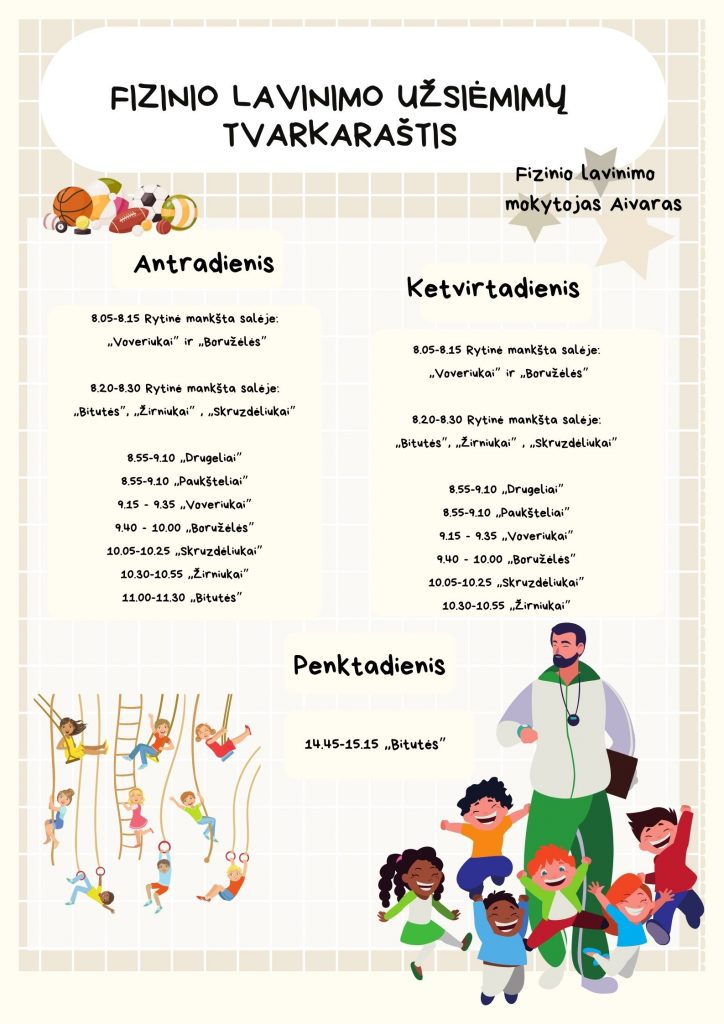 Fizinio lavinimo užsiėmimų tvarkaraštis